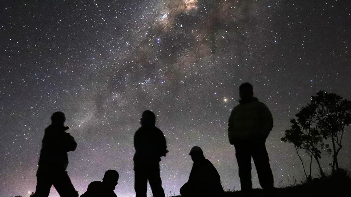 Sterne, Planeten, Konstellationen, Hubble, ISS oder Satelliten im Himmel entdecken. Die Herausforderung ist, wach zu bleiben, da das eine der kürzesten Nächte des Jahres ist. Der Plan: wir marschieren ein Stück und machen es uns gemütlich, um den Sonnenuntergang zu beobachten (21:13 Uhr). Langsam erscheint der erster Planet... Je dunkler wird, desto mehr Objekte entdecken wir. Der Wecker wird um 22:30 Uhr gestellt, damit wir die letzte Seilbahn nicht verpassen... Ansonsten werden wir viele mehr Sterne die ganze Nacht sehen müssen :-)